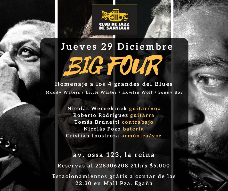 Jueves de Blues con Big Four. Jueves 29 de Diciembre a las 21:30 hrs, Valor $ 5.000