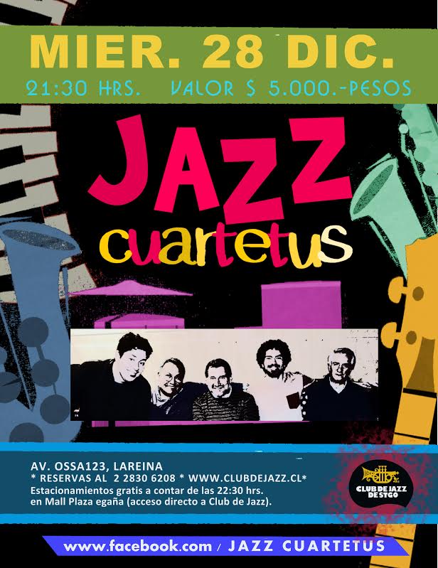 Jazzcuartetus, Miércoles 28 de Diciembre a las 21:30 hrs, Valor $ 5.000